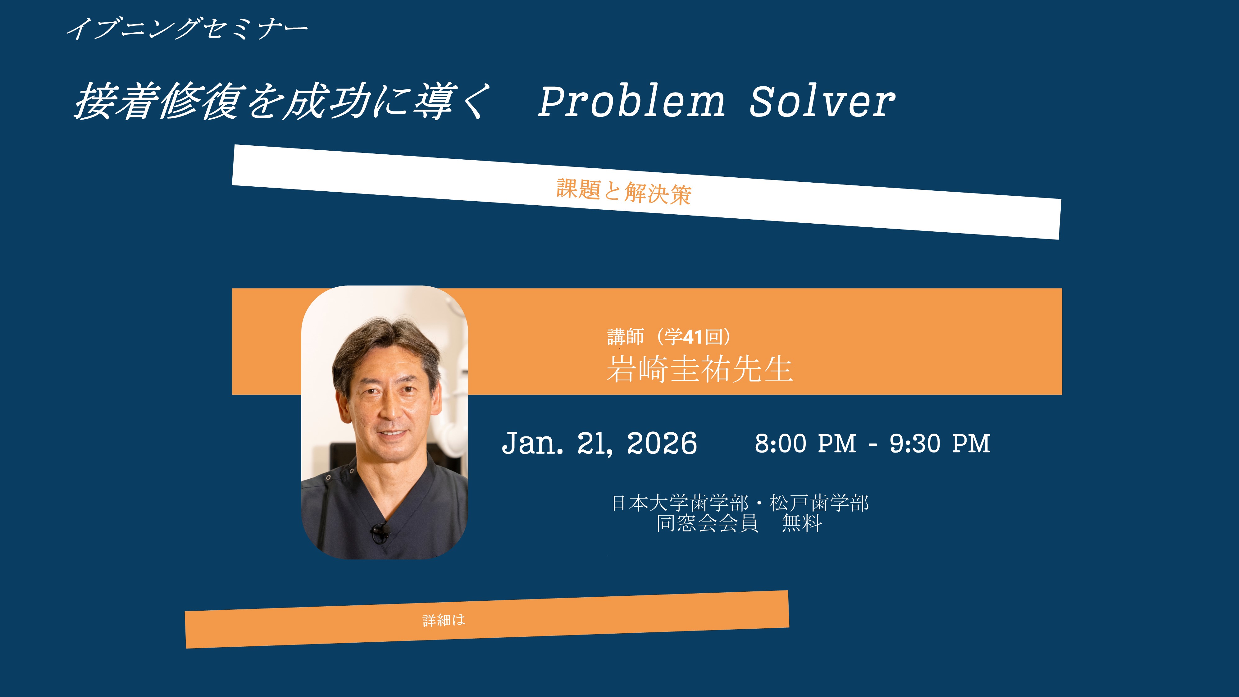 - 【学部よりお知らせ】令和7年度第1回 日本大学歯学部生涯学習講演会 開催案内